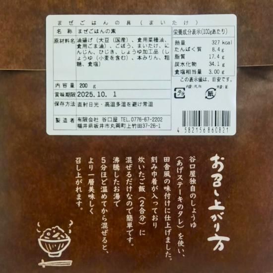 たっぷりのおあげと、福井県産の九頭竜まいたけ、人参、ひじきを使用し、じっくり丁寧に煮込んで作りました。