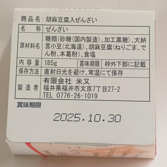 福井の老舗・米又が贈る「永平寺ぜんざい(ごま豆腐)」は、永平寺の精進料理を手軽に楽しめる、上品で奥深い和スイーツです。